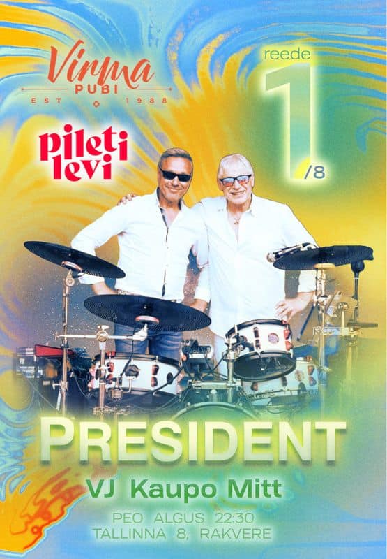 🎶 Reede, 1. august – ANSAMBEL PRESIDENTReedeõhtul vallutab lava Ansambel President – tantsuline kava ja tuntud lood teevad sellest mõnusa suvise peoõhtu.🎧 Muusika eest hoolitseb VJ Kaupo Mitt🎟️ Pilet 8€