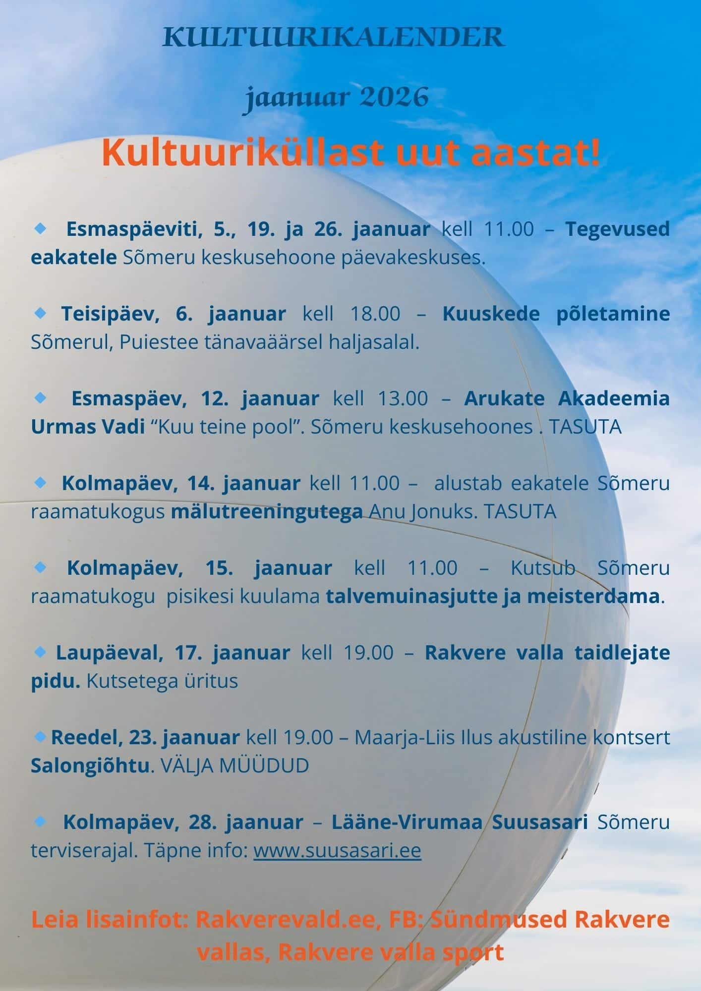 🔹Laupäeval, 17. jaanuar kell 19.00 – Rakvere valla taidlejate pidu. Kutsetega üritus