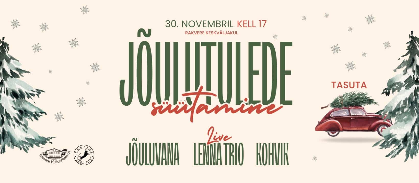 Süütame keskväljakul kuusel jõulutuled ja alustame jõuluootust.Pühademeeleolu loob Lenna Kuurmaa bändiga ja kepsakas jõuluvana.Too pere pisemad ja suuremad jõulurõõmu ammutama.