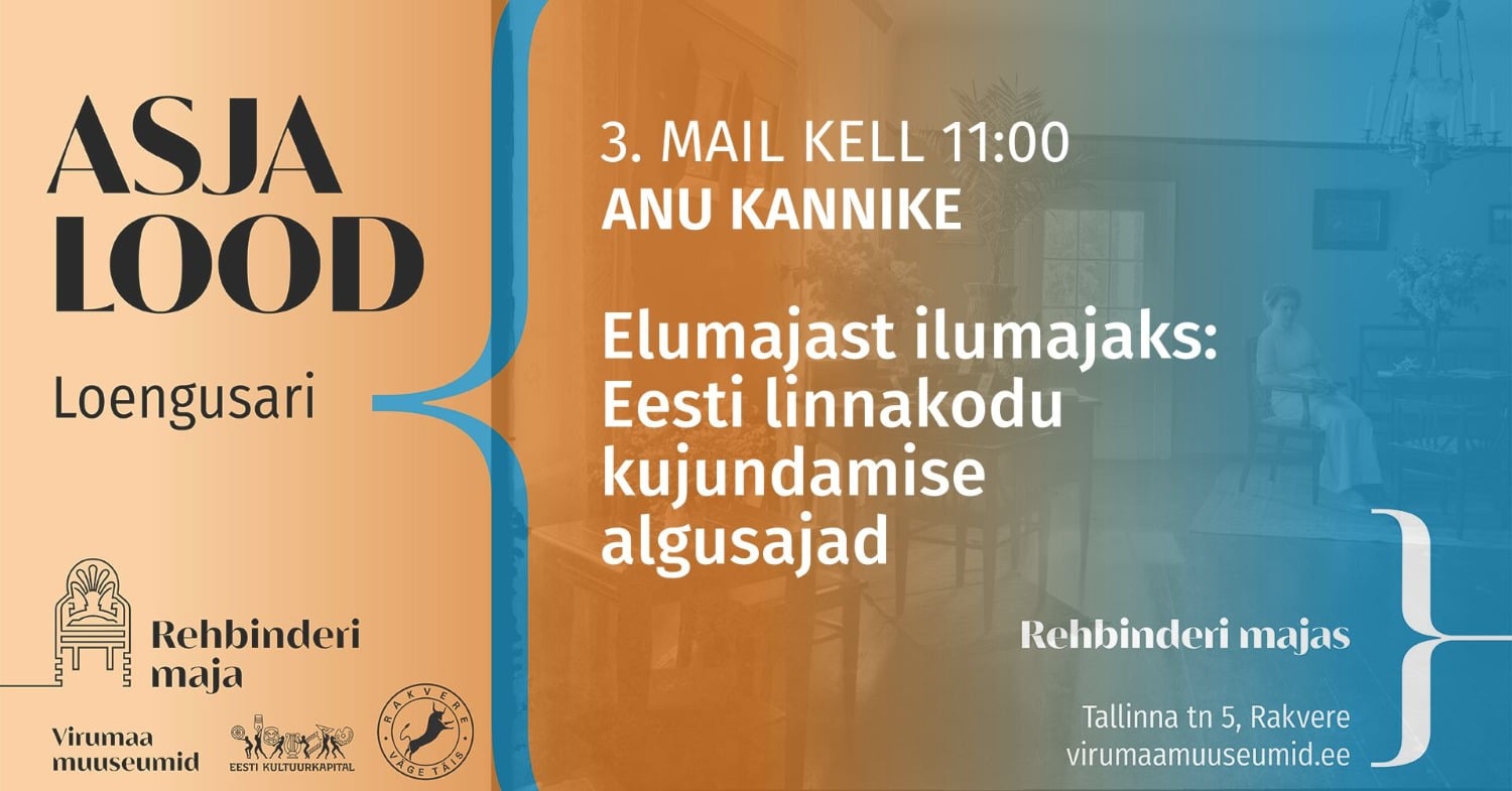 Laupäeval, 3. mail 2025 kell 11.00 toimub järgmine loeng sarjast “Asja lood”. Ootame huvilisi kuulama kodu- ja argikultuuri uurija etnoloog Anu Kannikese loengut „Elumajast ilumajaks. Eesti linnakodu kujundamise algusaastad.“ Loeng toimub Rehbinderi majas Rakveres (Tallinna tn 5).