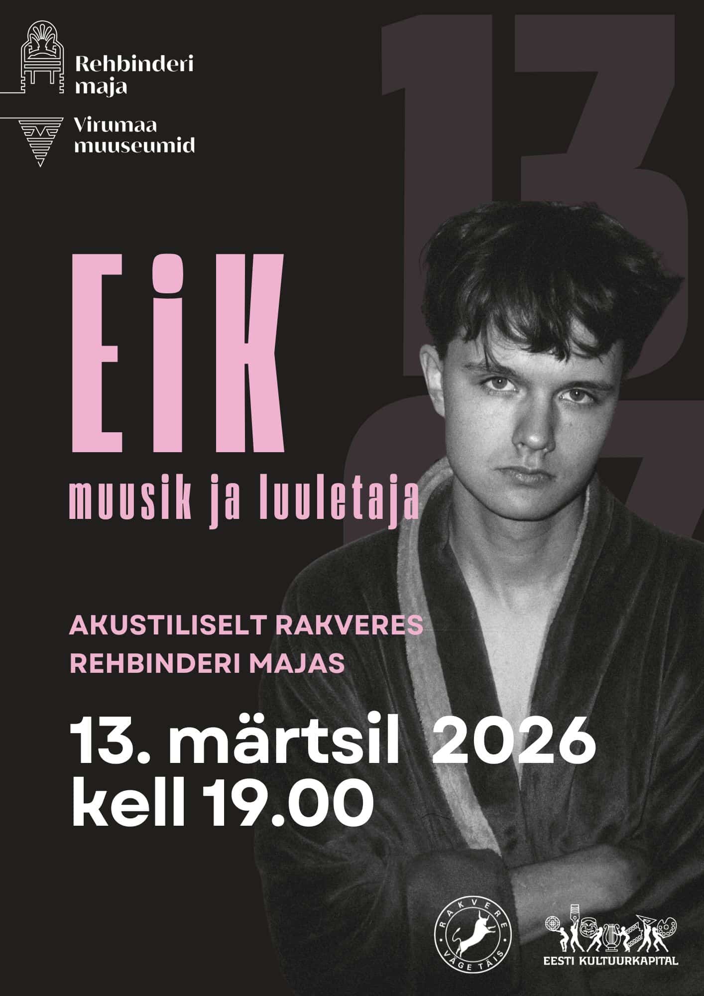 Reedel, 13. märtsil 2026 kell 19.00 astub Rehbinderi majas eksklusiivse akustilise kontserdiga üles muusik ja luuletaja EiK.