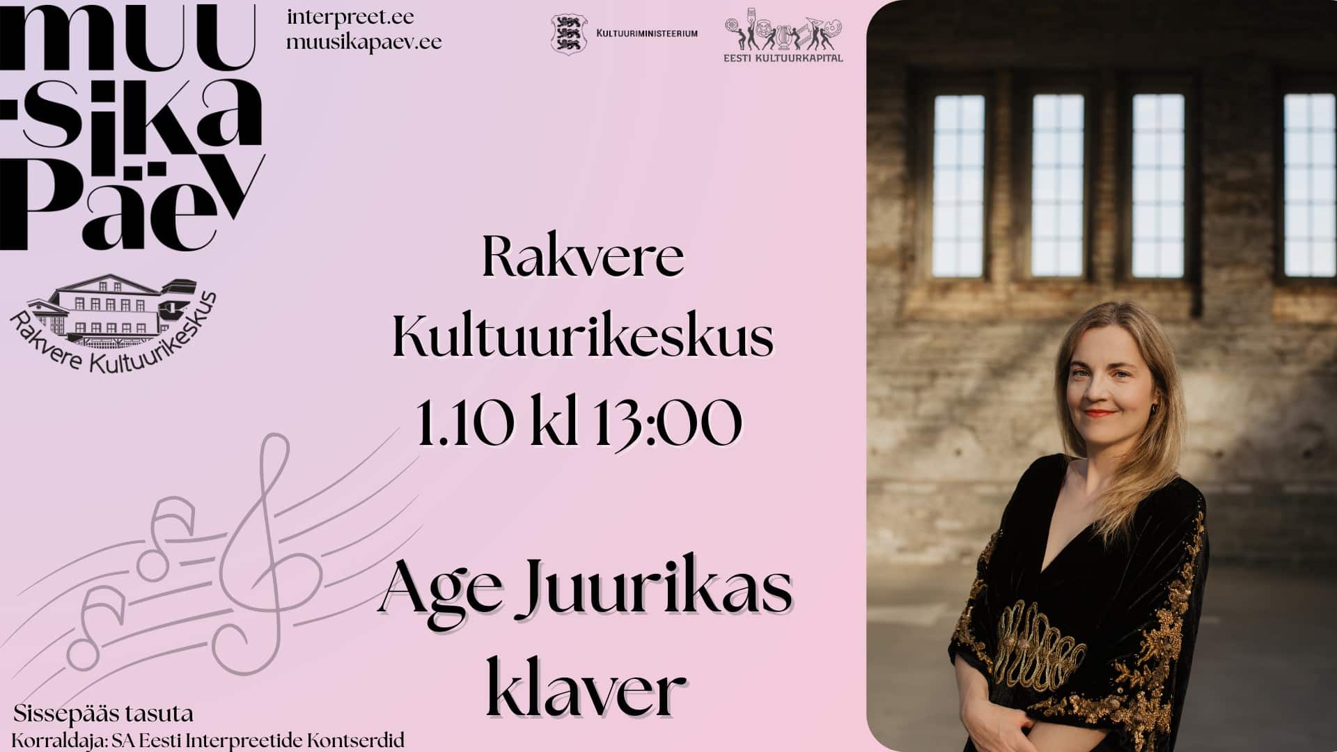 1. oktoobril tähistame Muusikapäeva kauni klaverikontserdiga, kus astub lavale tunnustatud pianist Age Juurikas. Kontserdil kõlab Eduard Tubina looming, mida esitaja avab ja tutvustab publikule isikliku lähenemisega. See on eriline võimalus kohtuda Eesti ühe olulisema helilooja muusikaga läbi Juurika meisterliku tõlgenduse. Oodatud on kõik muusikasõbrad!