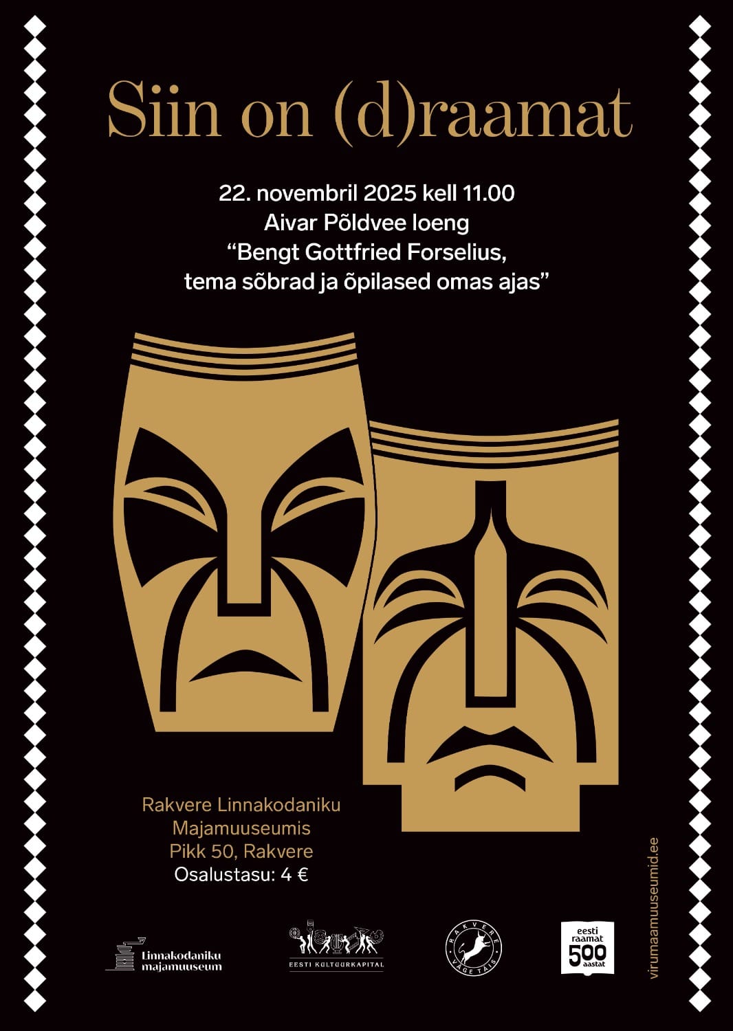 Loeng toimub Rakvere linnakodaniku muuseumis (Pikk tänav 50). Osalemine muuseumi sooduspiletiga: 4 eurot. Kehtib Muuseumikaart.
