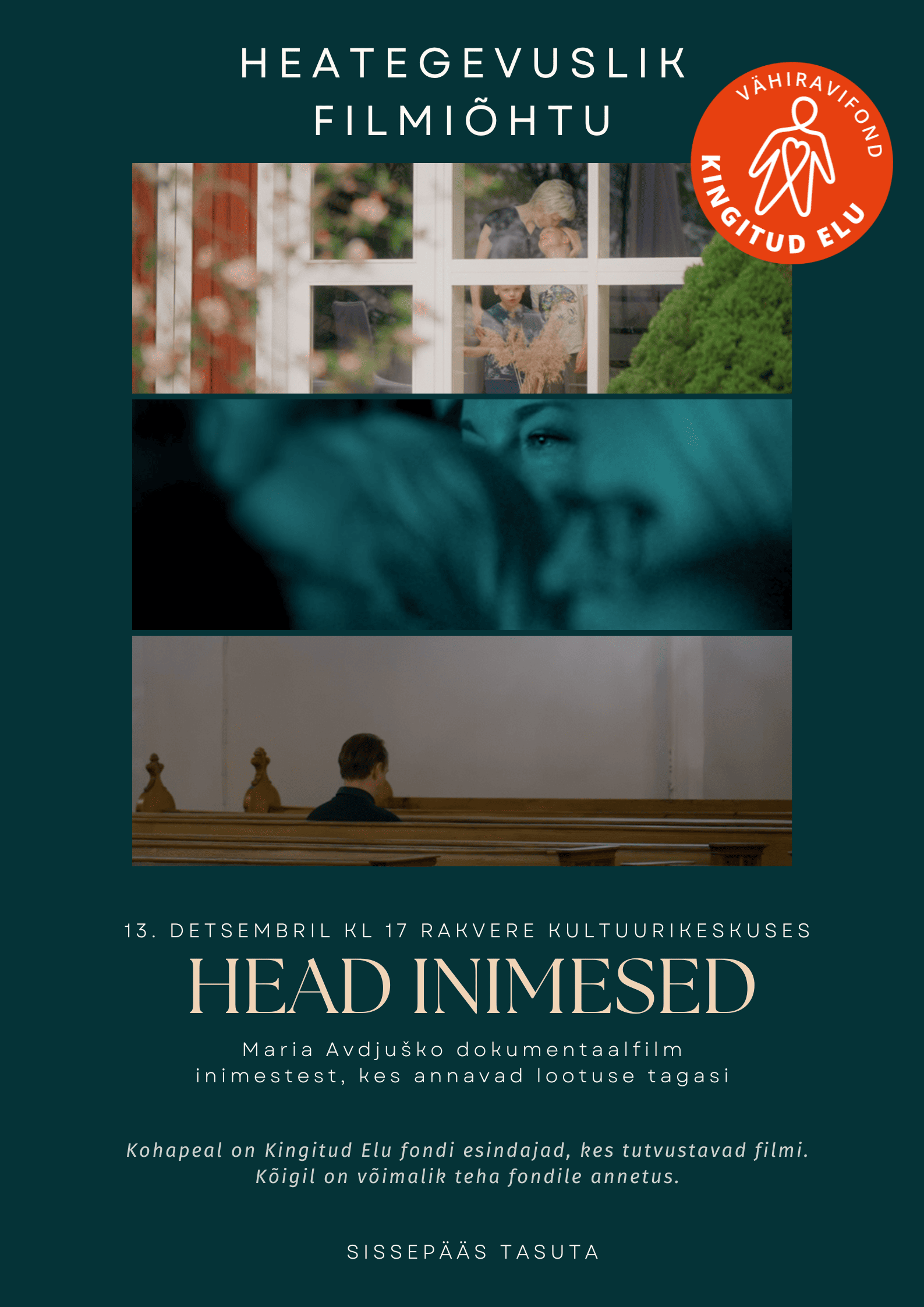 Filmiõhtu juhatavad sisse vähiravifondi Kingitud Elud esindajad – tutvustavad filmi, räägivad mõne sõnaga fondist endast ja kohapeal saab teha annetusi.