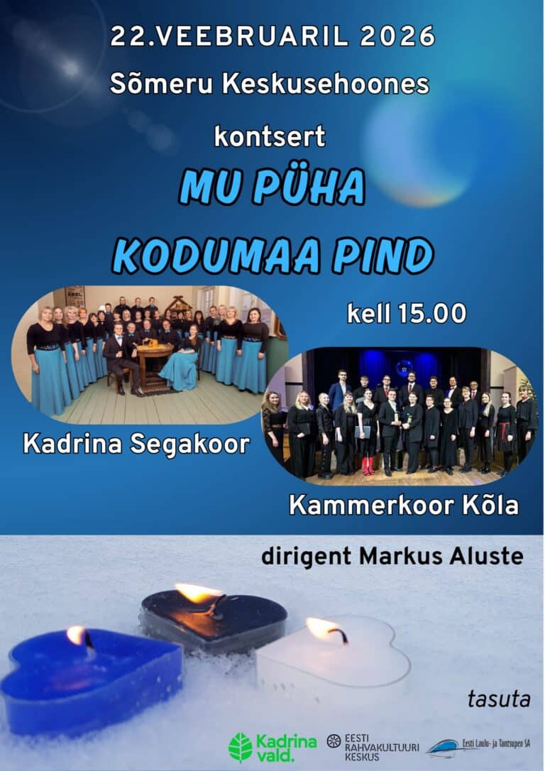 Sündmuste filter Vali kategooria Festival Jõulud Kino Kogupere Koolitus Muu Muusika Näitus Sport Tants/Pidu Tasuta Teater Toit Tühista valikud Kalendrivaade 7. märts, 2026 11:00 Rakvere Linnakodaniku Majamuuseum | Loeng: Anneli Banner “Kirjutatud aiad – vanad aiaraamatud Eestis” Vaata rohkem ... 7. märts, 2026 15:00 Arvo Pärdile pühendatud muusikamaja Ukuaru | ”Fantaasia” klaveril Piret Mikalai / Kontserdisari ”Sisemaailm” Vaata rohkem ... 7. märts, 2026 18:00 Rakvere Kolmainu kirik | Sopran Anu-Mari Metsoja ja kitarriduo Jelena Ossipova & Kristjan Tamm kontsert Vaata rohkem ... 7. märts, 2026 18:00 Rakvere Kolmainu kirik | Sopraano Anu-Mari Metsoja Kitaraduo Jelena Ossipova – Kristjan Tamm kontsert Vaata rohkem ... 7. märts, 2026 18:00 Rakvere Kolmainu kirik | Soprano Anu-Mari Metsoja and guitar duo Jelena Ossipova – Kristjan Tamm concert Vaata rohkem ... 7. märts, 2026 19:00 Sõmeru keskusehoone | Naistepäeva tantsuõhtu Vaata rohkem ... 7. märts, 2026 20:00 Katariina keldri restoran | Tantsuõhtu MaMa-ga Katariina keldri restoranis Vaata rohkem ... 7. märts, 2026 20:00 Pikk tänav 2, 46202 Väike-Maarja, Lääne-Viru maakond | Naistepäeva kabareeõhtu Väike-Maarja seltsimajas Vaata rohkem ... 7. märts, 2026 20:00 Pikk tänav 3, 44307 Rakvere, Lääne-Viru maakond | Tantsuõhtu ansambliga MaMa Katariina keldri restoranis. Vaata rohkem ... 8. märts, 2026 12:00 Rakvere Teatrimaja, Teatrikino | HÜPPAJAD Hoppers (2026) Režissöör: Daniel Chong Vaata rohkem ... 8. märts, 2026 13:00 Tallinna maantee 13, 45301 Haljala, Lääne-Viru maakond | Naistepäeva kontsert – Alen Veziko Vaata rohkem ... 8. märts, 2026 14:10 Rakvere Teatrimaja, Teatrikino | SÄÄRANE MULK Säärane mulk (2025) Režissöör: Ergo Kuld Vaata rohkem ... 8. märts, 2026 16:00 Vabaduse 1, 44316 Rakvere, Lääne-Viru maakond | Rakvere Linnaorkestri ja Virumaa Poistekoori naistepäeva kontsert! Vaata rohkem ... 8. märts, 2026 16:05 Rakvere Teatrimaja, Teatrikino | TÄIUSLIKUD VÕÕRAD Täiuslikud võõrad (2026) Režissöör: Arun Tamm Vaata rohkem ... 8. märts, 2026 17:00 Tapa Kultuurikoda | Kriminaalkomöödia ”Stockmann Yard – Kaubamaja kurikaelad” / Vana Baskini Teater Vaata rohkem ... 8. märts, 2026 17:55 Rakvere Teatrimaja, Teatrikino | “VIHURIMÄE” Wuthering Heights (2026) Režissöör: Emerald Fennell Vaata rohkem ... 8. märts, 2026 19:00 Rakvere Teater | Reigo Tamm ja Eva Koldits ”Kriis Kriis Mis Siis” Vaata rohkem ... 8. märts, 2026 20:35 Rakvere Teatrimaja, Teatrikino | SEE LINNUKE ON LEIN The Thing with Feathers (2026) Režissöör: Dylan Southern Vaata rohkem ... Näitan 1-18 258-st Laadi rohkem