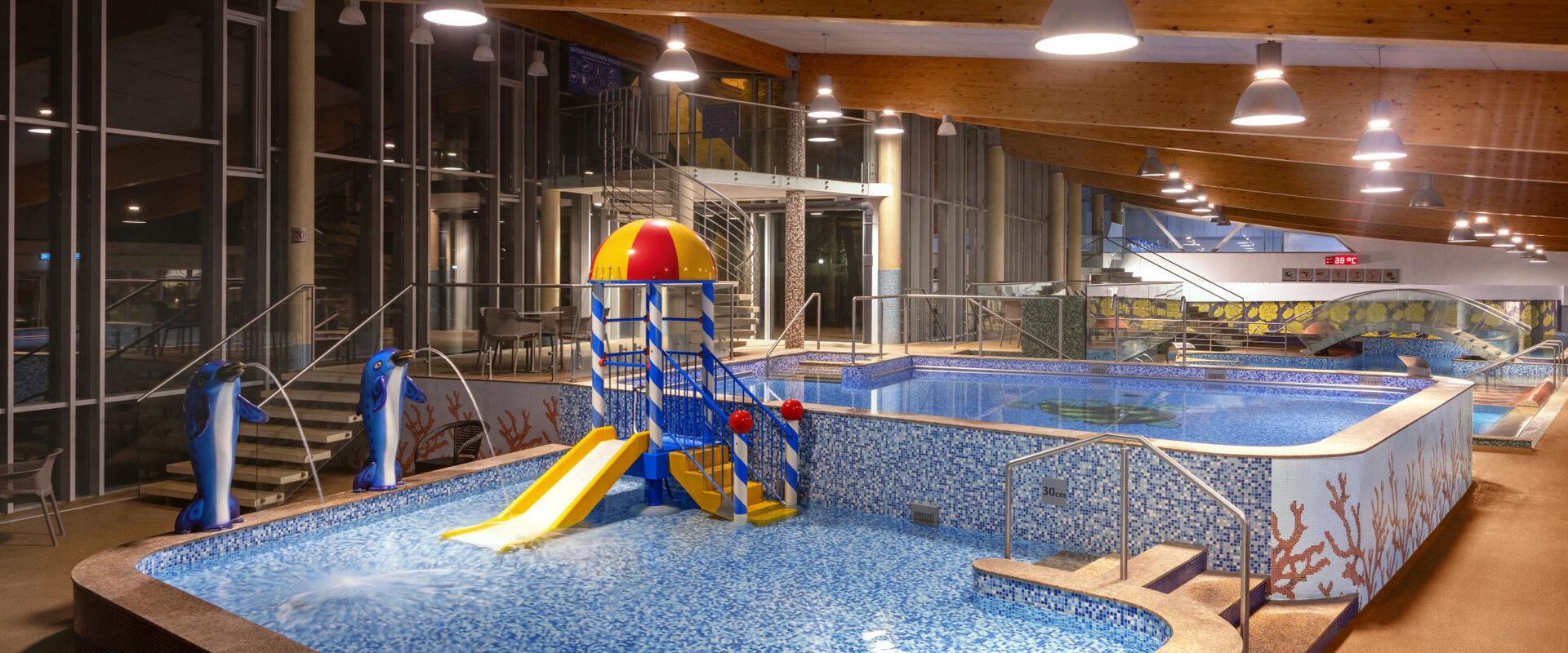AQVA veekeskuses on 25-meetrine, 6 rajaga sportbassein, mitu eri düüside ja massaažijugadega basseini, beebi- ja lastebassein, aastaringselt avatud välibassein ja valgusefektiga Black Hole liutoru. Häid jooke, kokteile ja kehakinnitust saab veekeskuse baarist.
