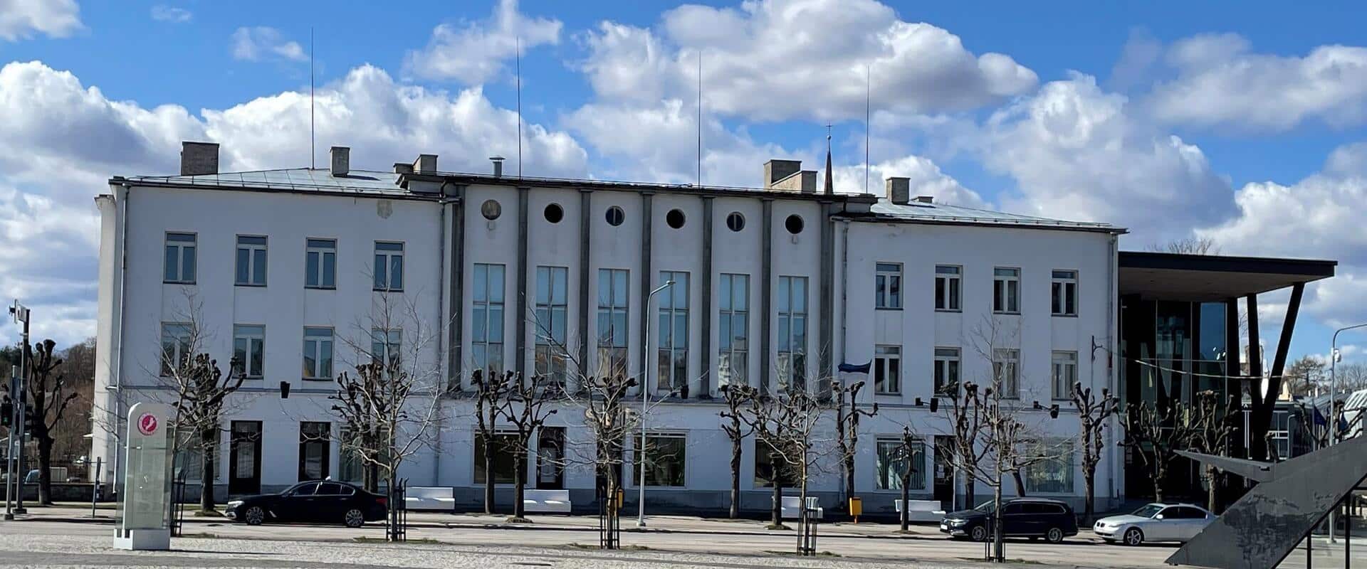 Hoone põhiplaan ja üldlahendus on iseloomulikud väikelinna pangamajadele. Funktsionalismilähedase rahuliku fassaadi peamise aktsendi loob ümmarguste pööninguakendega pangasaali osa hoone keskel.